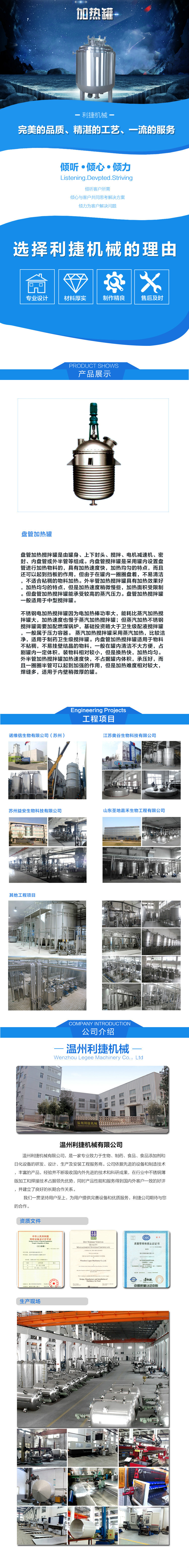自动加热,使用便利等优点,被广泛用于原油,化工,橡胶,农药,染料,医药,食品中,以完成硫化,硝化,氢化,烷基化,聚合,@nz等工艺。充分混杂反应物是前提。对于诸如加热,冷却,液体提取和气体吸收之类的物理变化过程,需搅拌装置以获取不错的效用。外部线圈电抗器可以为客户设计和加工。